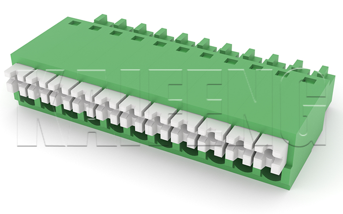 Pluggable Terminal Block MATERIAL:①Reed:PA66,UL94V-0 ②Clip : Stainless steel3 Button:Phosphor bronzeElectricalUL IEC Rated voltage300V 320V &
